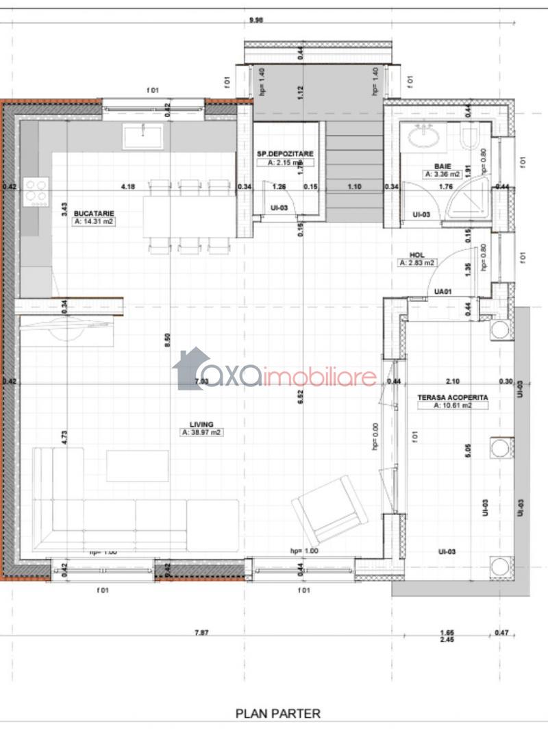 PARTER / Primul nivel: living, bucatarie, baie, hol, camara, terasa.
