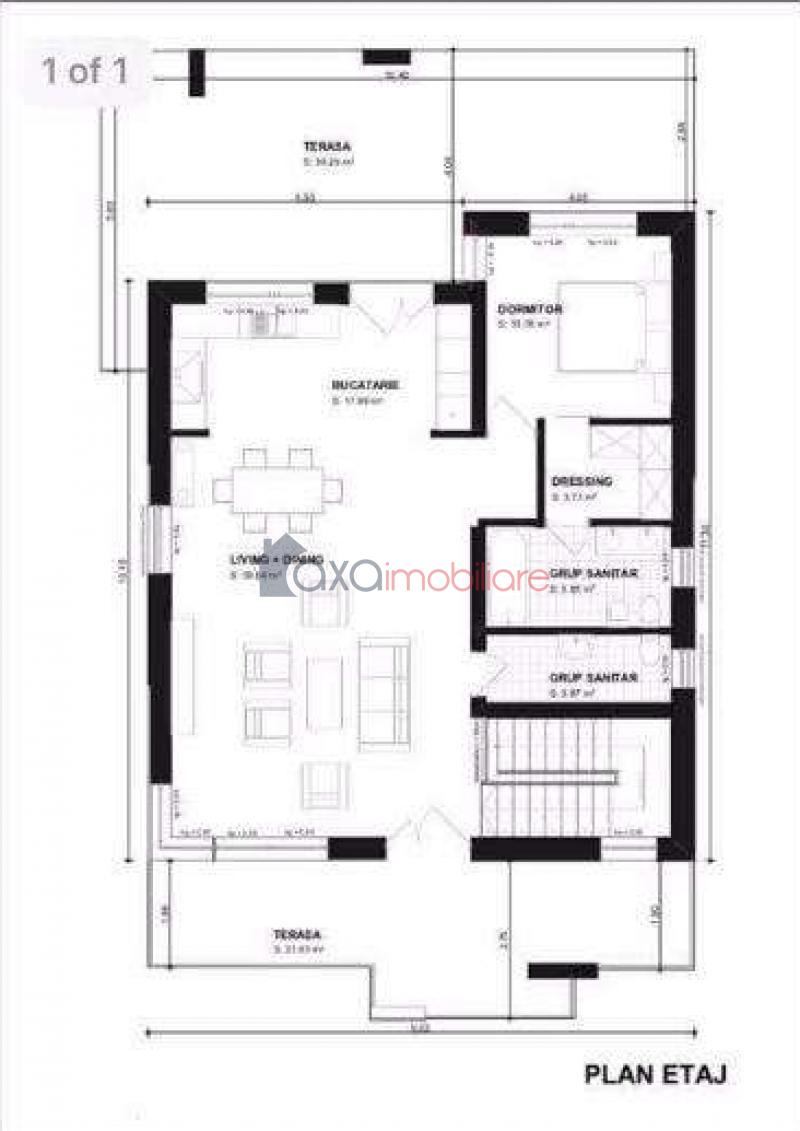 ETAJ: 1 living, 1 bucatarie, 1 dormitor, 2 bai, 1 dressing si terase