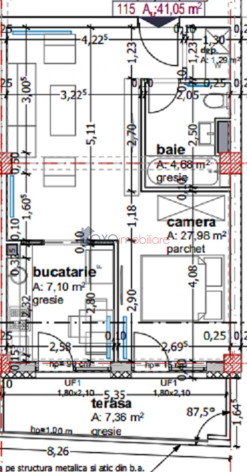 Este compus din 1 camera, 1 bucatarie, 1 baie, 1 hol si 1 terasa.