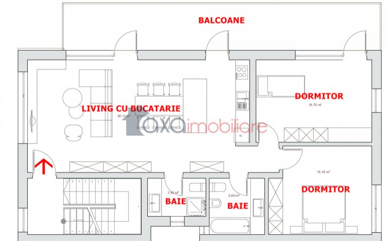 Compartimentarea este semidecomandata si foarte bine gandita. Apartamentul este compus dintr-un living cu 1 bucatarie de tip open space, 2 dormitoare, 2 bai si 2 balcoane.