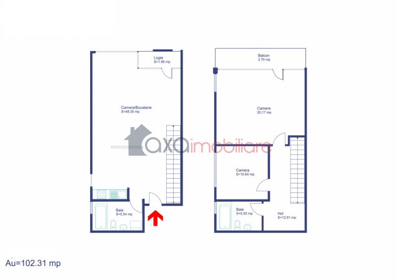 Oferim spre vanzare apartament cu 3 camere, cu suprafata utila 102.31 mp, pozitionat pe 2 niveluri intr-un imobil nou, finalizat in 2015.