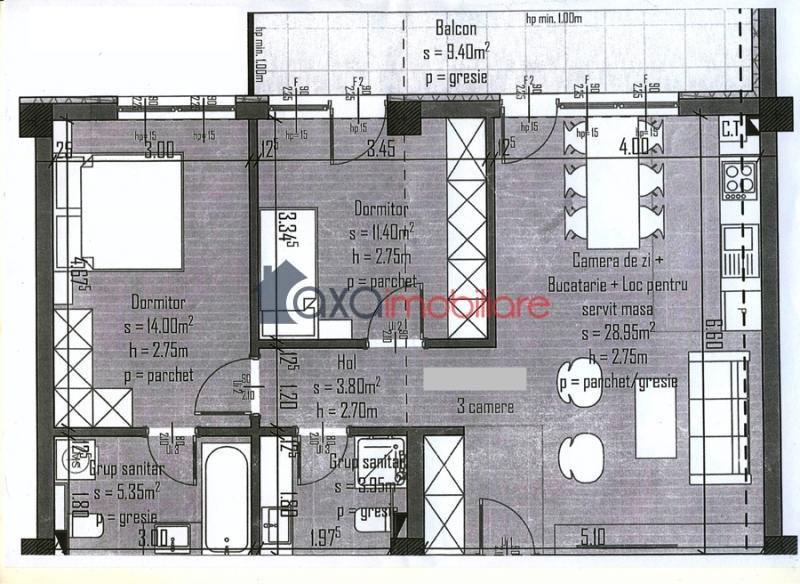 Apartament 3 camere de vanzare in Cluj-Napoca, Centru ID 6098