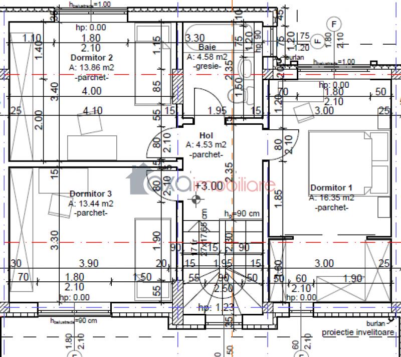 ETAJ 1: 3 dormitoare, 1 baie, 1 hol