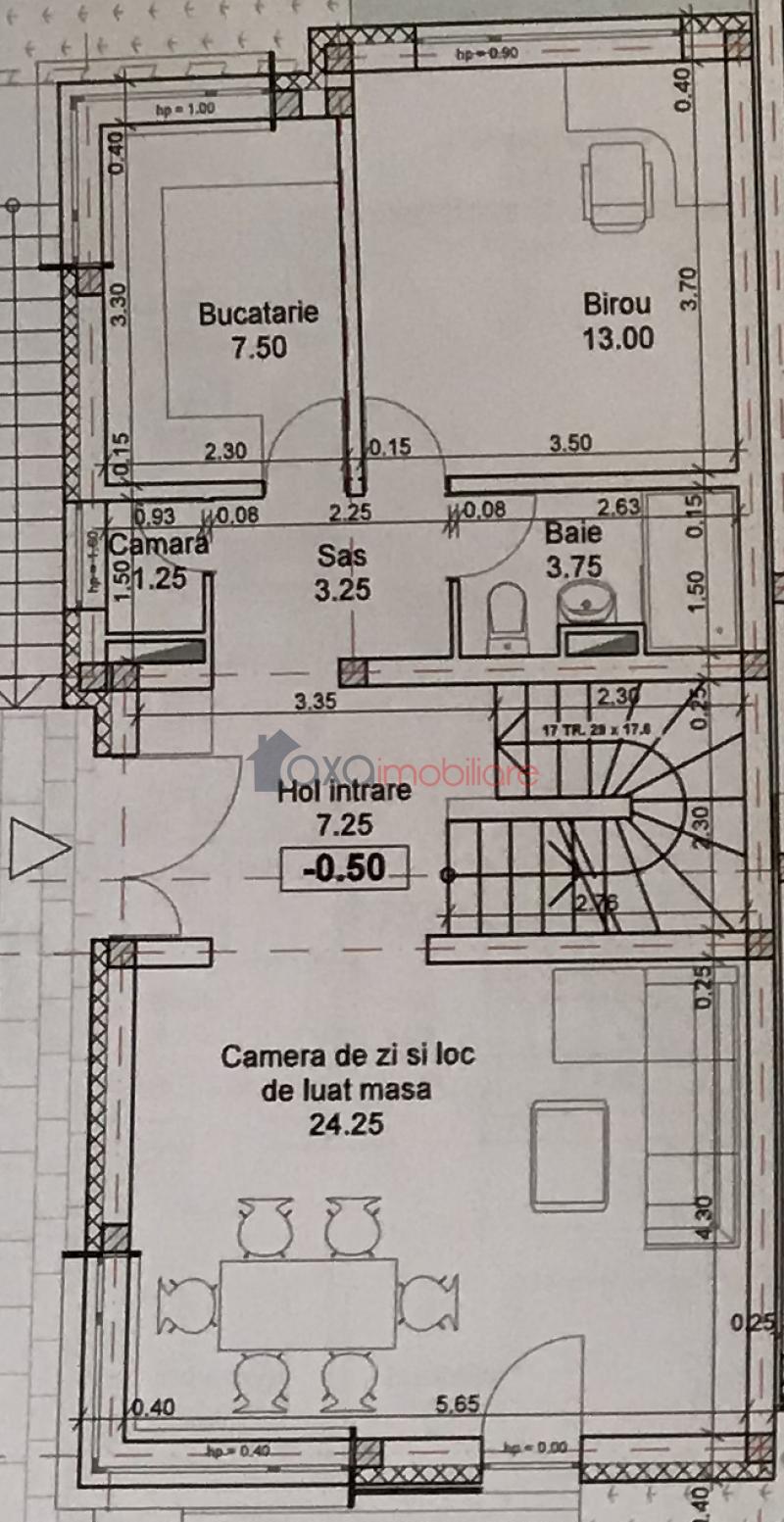 Dotari: centrala termica, calorifere, incalzirea in pardoseala la parter, geamuri termopan cu tamplarie din PVC si usa la intrare.