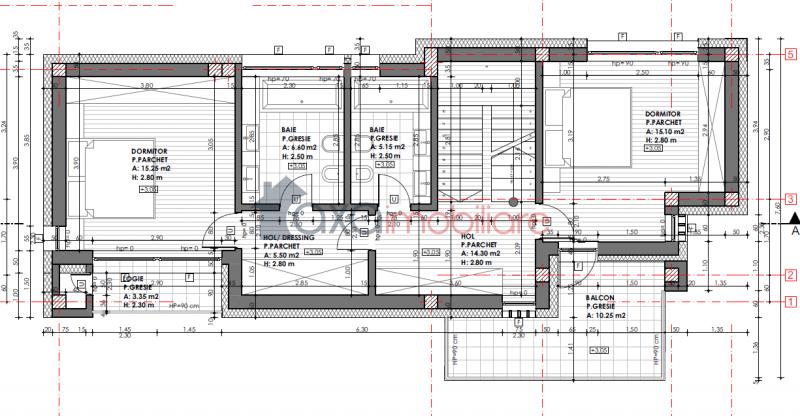 ETAJ: 2 dormitoare 2 bai, 2 holuri / 2 dressing-uri, 1 balcon, scari interioare, 1 logie.