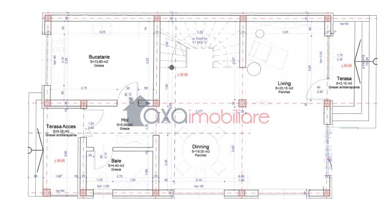 - PRIMUL NIVEL (PARTER): 1 living, 1 dining, 1 bucatarie, 1 baie, 1 spatiu pentru depozitare, hol, 2 terase.