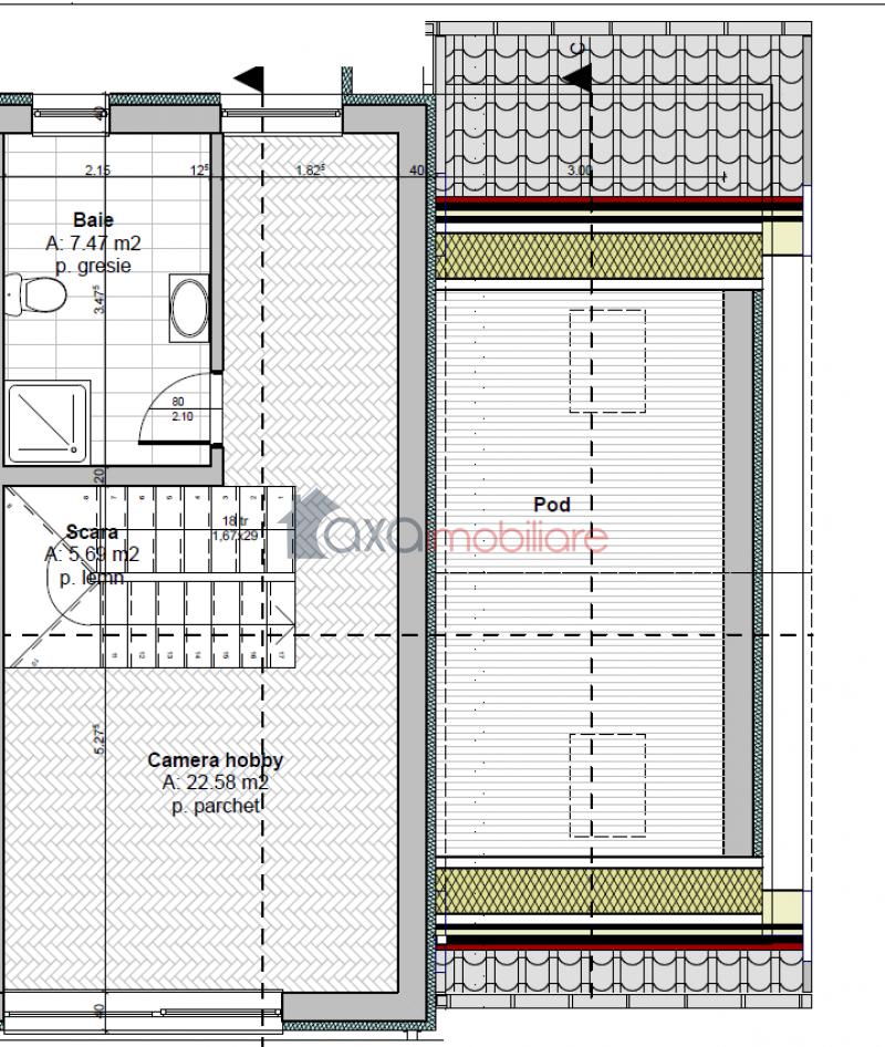 MANSARDA: camera hobby (22.58 mp), baie (7.47 mp), casa scarii (5.69 mp).