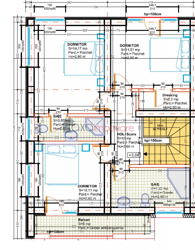 ETAJ / AL DOILEA NIVEL: 3 dormitoare, 2 bai, hol, 1 balcon.