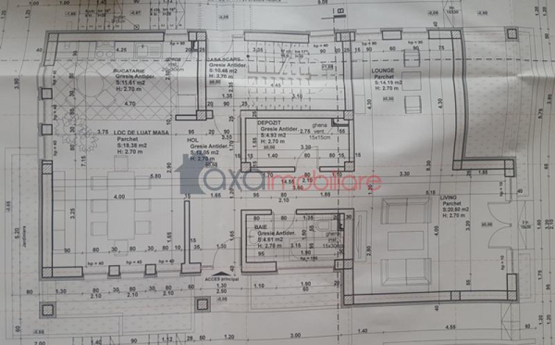* PARTER / PRIMUL NIVEL (110.14 mp) : living, bucatarie, loc de luat masa, lounge, depozit, casa scarii, hol, baie, terasa.