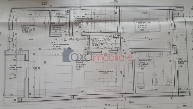 * MANSARDA / AL TREILEA NIVEL (96.83 mp) : camera biliard, camera sport, zona recreere, casa scarii, hol, depozit, zona pianina, baie, 2 terase.