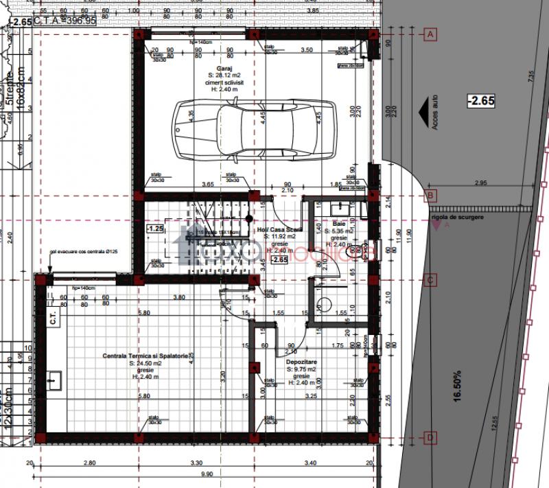 Imobilul a fost finalizat in 2015 si este dispus pe regim de inaltime S+P+1E, astfel: SUBSOL: garaj, baie, camera CT, uscator, magazie; PARTER: hol, living cu loc de luat masa, bucatarie, baie, camara, terasa;