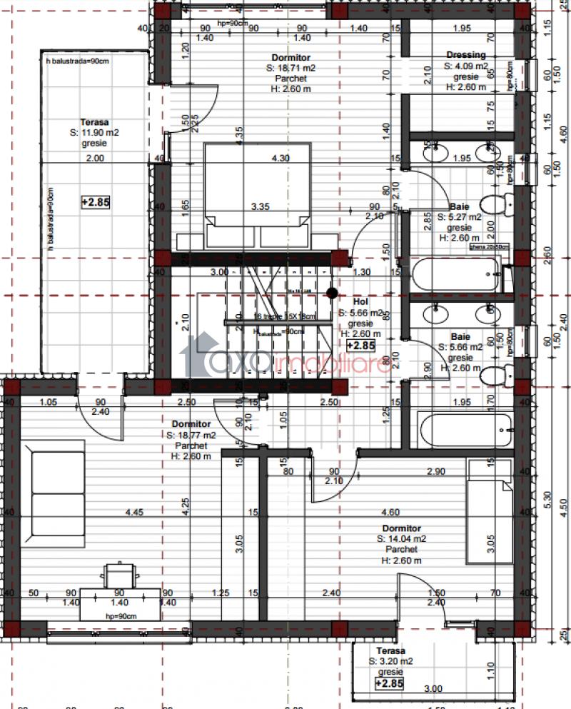 ETAJ 1: hol, 3 dormitoare, 2 bai, dressing, spatii pt depozitare, 2 terase.
