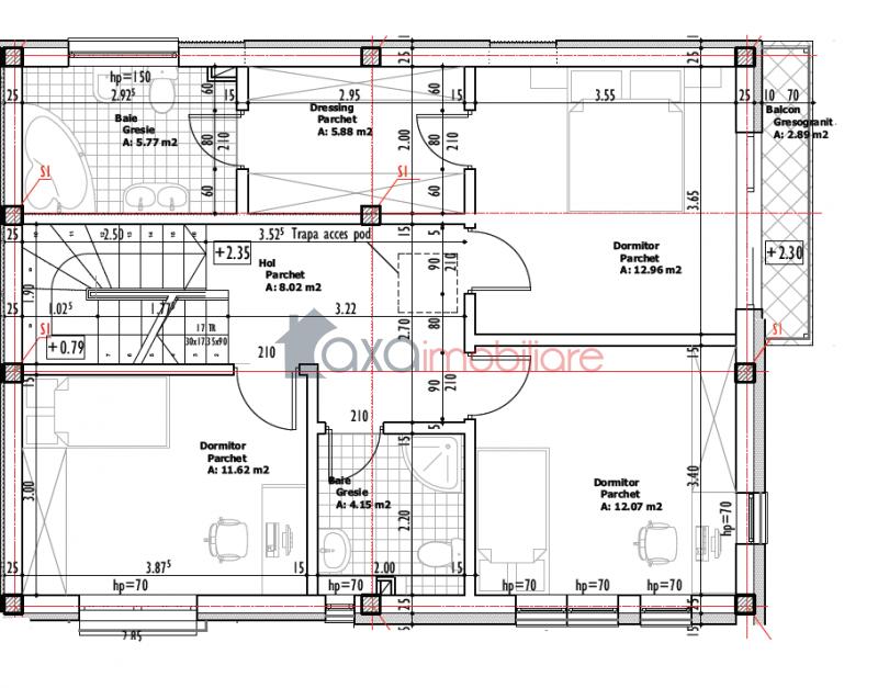 ETAJ: 3 dormitoare, 1 dressing, 2 bai, 1 terasa, 1 hol.