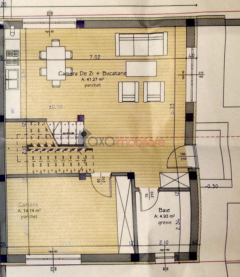 PARTER: 1 living cu 1 bucatarie de tip open space, 1 camera, 1 hol, 1 baie.